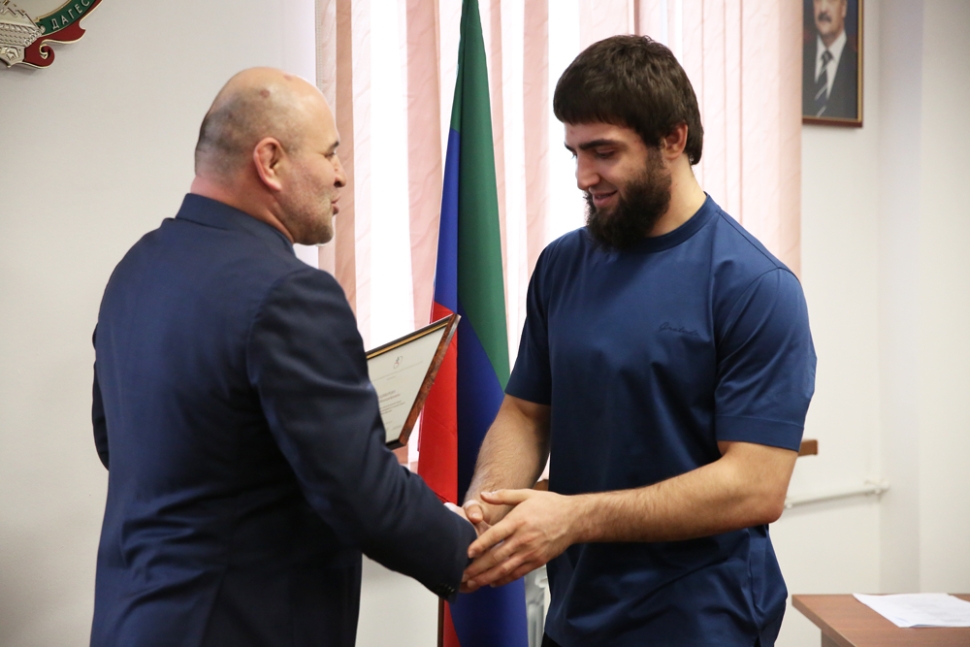 Министр спорта РД Сажид Сажидов провел встречу с победителями и призерами прошедшего в Красноярске международного турнира по вольной борьбе «Кубок Ивана Ярыгина».