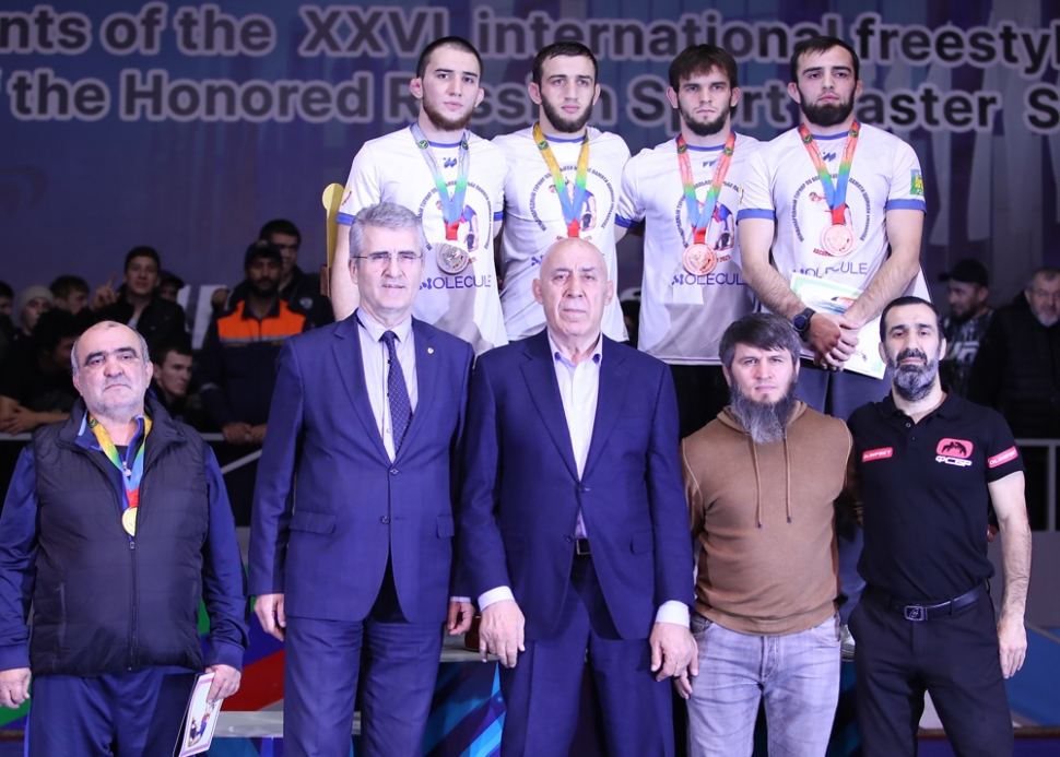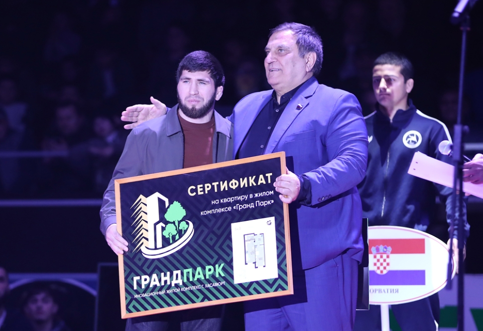 За финальными поединками наблюдали почетные гости, в числе которых - представители руководства города и других муниципалитетов, депутаты Госдумы и Народного собрания, звезды мировой борьбы, известные журналисты, общественные деятели и бизнесмены. Часть из них приняла участие в предшествовавшей финальному блоку церемонии открытия. В рамках торжественного мероприятия депутат Госдумы, заслуженный тренер России Сайгидпаша Умаханов вручил олимпийскому чемпиону Завуру Угуеву сертификат на двухкомнатную квартиру в строящемся в Хасавюрте элитном жилищном комплексе «Гранд-Парк». Как пояснил Сайгидпаша Дарбишевич, это немного запоздалый подарок титулованному легковесу за «золото» на чемпионате мира в Хорватии.