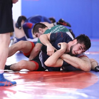 Тренировка дагестанской команды вольников на первом сборе по подготовке к Кубку И. Ярыгина-2026. Махачкала, Караман. 09.12.2025. Фото - Арип Ибрагимов
